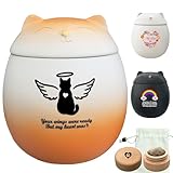 Handmade Cat Urn,Pet Urn For Cats Ashes,Cat Urns for Ashes Personalized Custom,Urns for Cats,Ceramic Urn,Small Animals Urn, | H:4.8in D:4.2in | (Orange) |